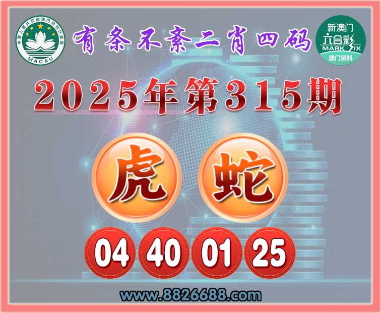 315期:【有条不紊】 🥓二肖四码🥓【蛇】【04.40.01.25】开:虎04准上榜高手