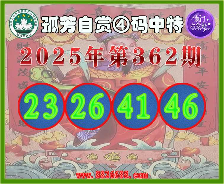 362期:〖孤芳自赏〗 🍖④码中特🍖【23.26.41.46】开:23